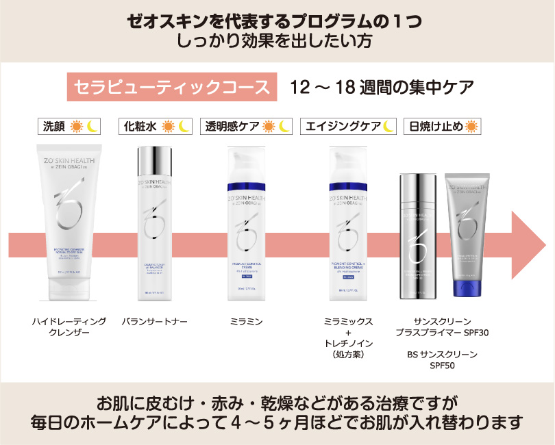 ゼオスキンを代表するプログラムの1つ” セラピューティックコース” はしっかりと効果を出したい方におすすめのプログラムです。